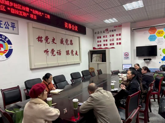为扎实推进2024年省级城乡社区治理“创特色”工程,圆满完成玉带桥社区“自治互助型”社区创建项目成果展工作,11月14日,泸州市龙马潭区红星街道玉带桥社区居民委员会联合泸州市益康社会工作评估与研究中心,在社区内成功举办“冬至暖邻 自治互助”展演议事会。社区党组织成员、益康社工与居民代表齐聚一堂,共商冬至主题活动细节,凝聚社区自治发展合力。
