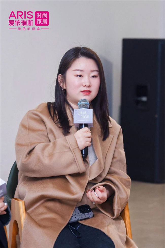 今日美术馆创新事业部总监杨帆女士分享了双方的合作历程:“今日美术馆深耕艺术20年,爱依瑞斯深耕家居30年,双方在各自领域都有深厚的专业积累。”她透露,2025年12月,双方联合发起“女性艺术家会客厅”,至今已举办6期。“我们希望打破传统艺术展览的边界,让艺术家的精神表达通过家居产品走入大众生活。”