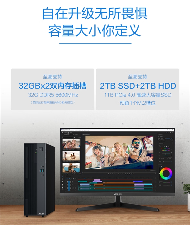 稳定性亦源于对未来需求的从容应对。这款华硕破晓6X搭载32GB DDR5 5600MHz大容量内存,轻松应对当下各种复杂任务;硬盘方面,1TB PCIe 4.0高速固态硬盘带来极速开机与数据读写体验,机身支持双M.2 SSD与HDD扩展,用户可灵活构建高速系统盘与大容量仓储盘的组合,兼顾速度与成本,满足企业数据长期增长的存储需求。